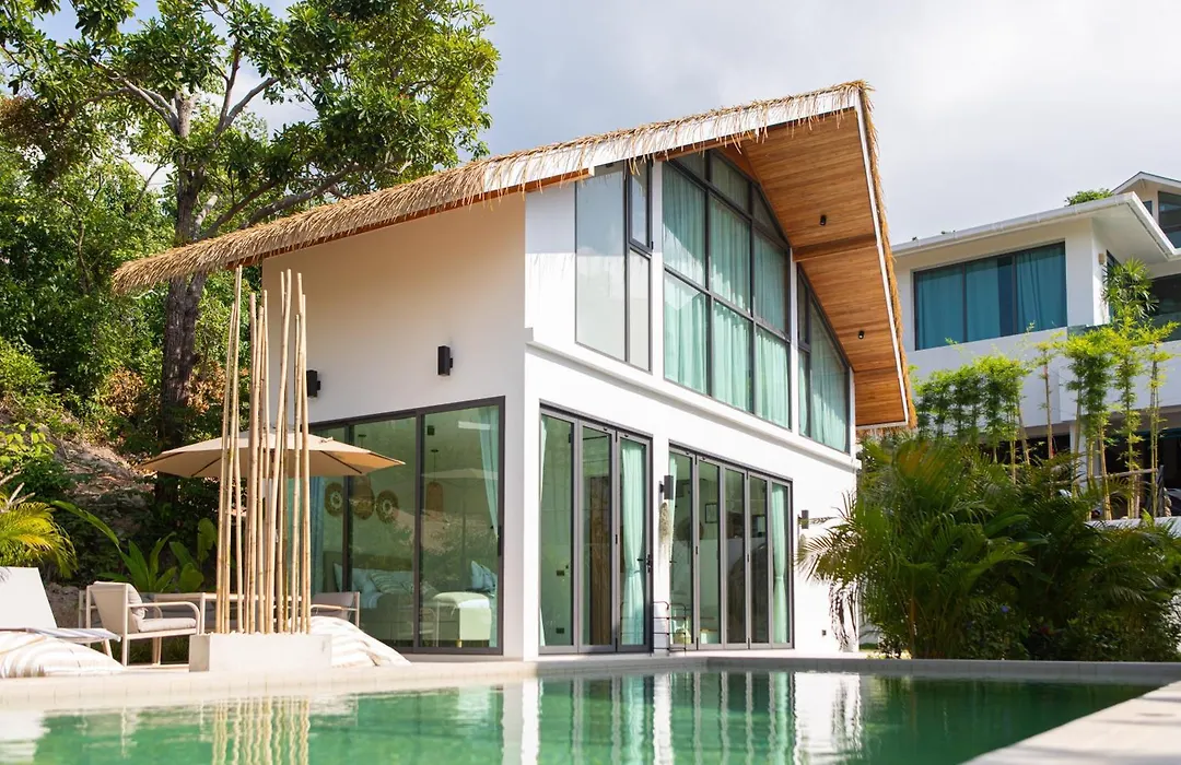 De woning biedt uitzicht op het zwembad en beschikt over een terras. De gesitueerde in Srithanu Siam Mila Tropical House Villa beschikt over een badkamer met een douche.